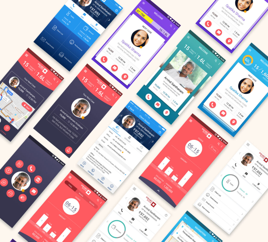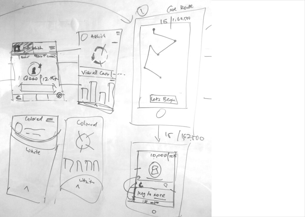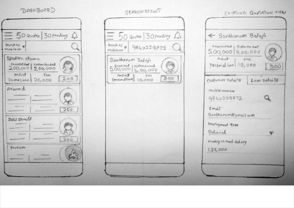 I began with paper sketches to explore layouts, focusing on simplified workflows, GPS integration, and real-time debtor info. After team validation, I refined them into wireframes, mapping user flows for borrower location, payments, and task management, ensuring a functional and user-friendly design for field agents.